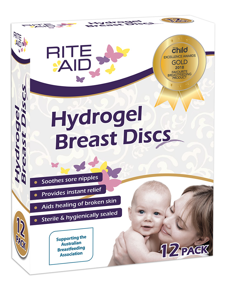 Hydrożelowe kompresy piersiowe Rite Aid zapewniają chłodzenie, łagodzą ból i regenerują popękane brodawki, umożliwiając kontynuowanie karmienia piersią.