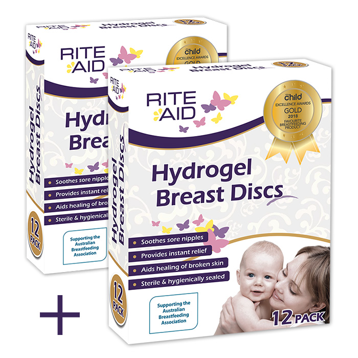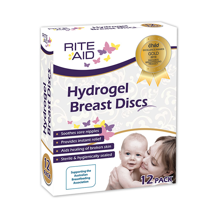 Hydrożelowe kompresy piersiowe Rite Aid zapewniają chłodzenie, łagodzą ból i regenerują popękane brodawki, umożliwiając kontynuowanie karmienia piersią.